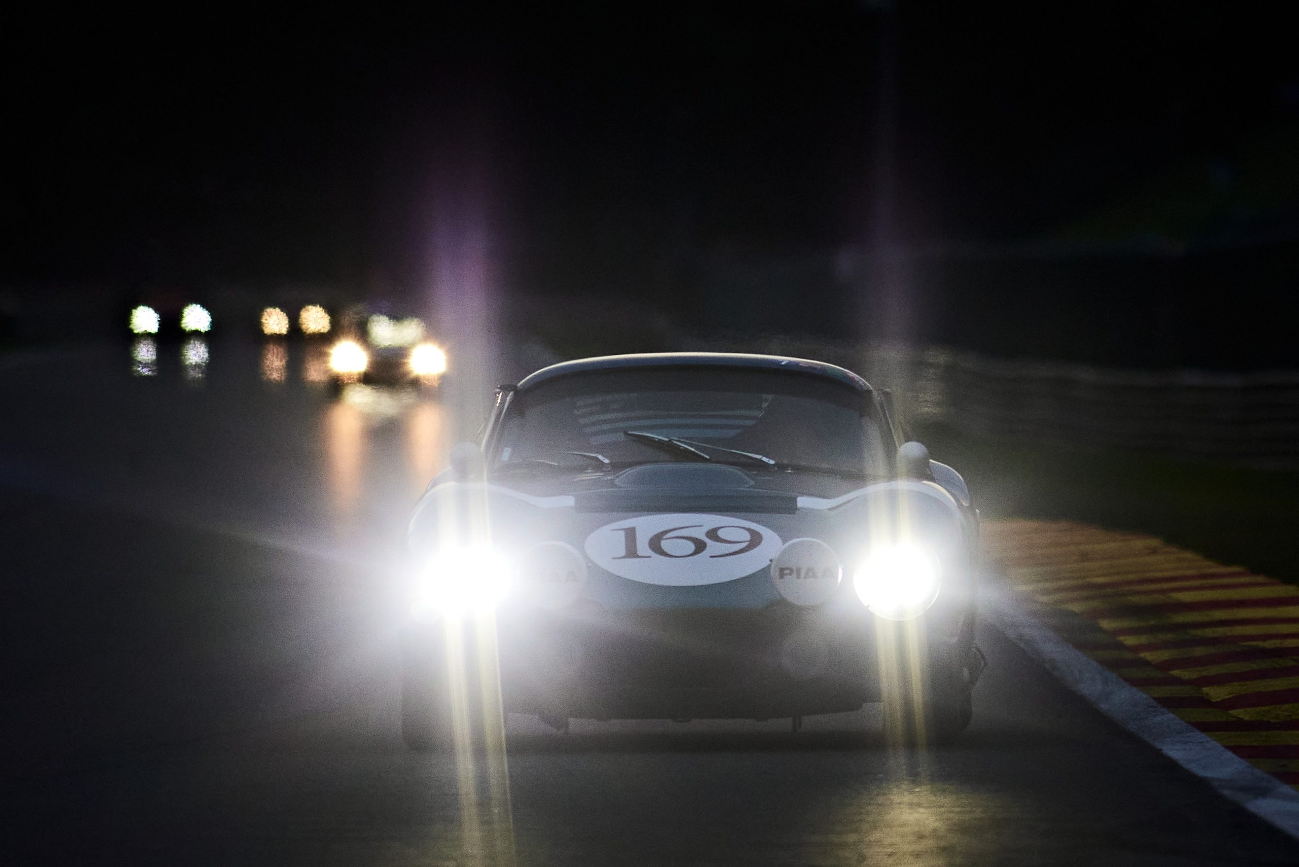 As day turned to night, and dusk fell on the Kemmel straight, the Ford GT40 dominance at the top of the field had dwindled, with the charging Ginetta and Lotus Elans making headway. Yet pole sitters Ferrao/Stretton were still in the mix. The glare of headlights in the dying light of day is a remarkable, and evocative sight, which encapsulates the true historic feel of this event, glowing brake discs and fire projected from exhaust pipes the only other illuminations in the impossibly dark forests of the Ardennes.