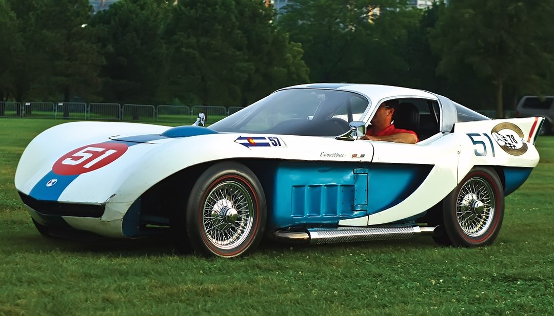 The wild 1963 Excalibur Hawk Coupe Racing Prototype of Tony Stevens is driven by a 300-hp Studebaker R2 V8 engine.