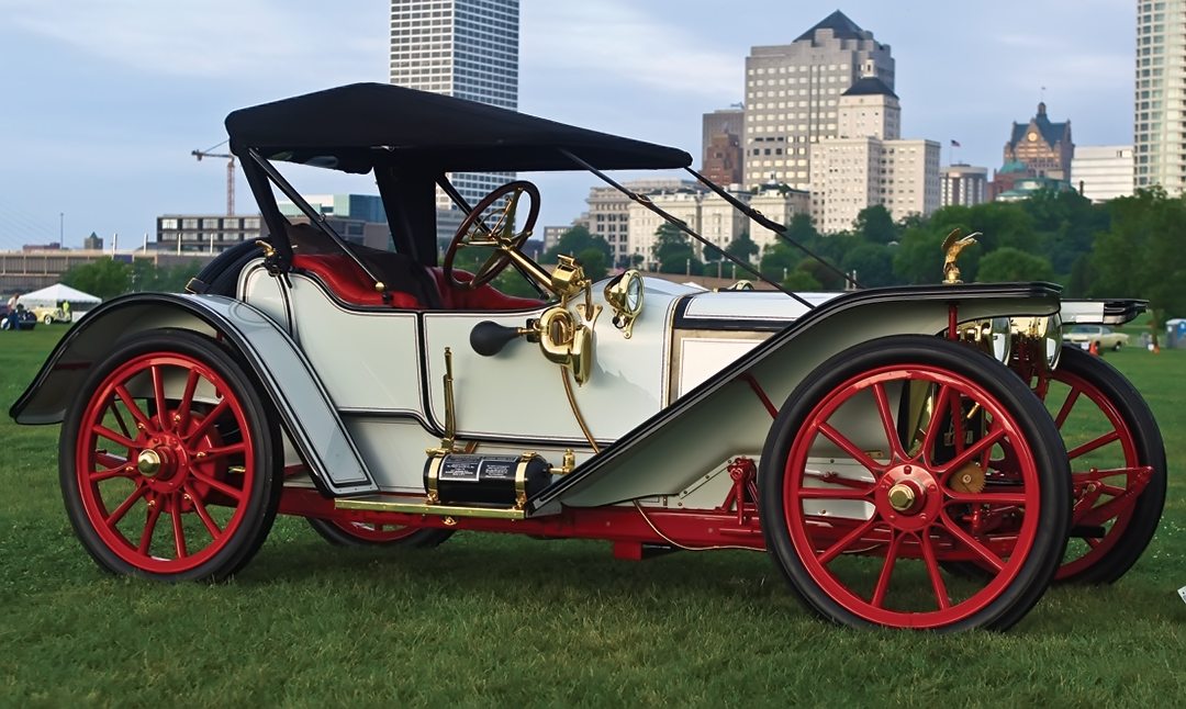 Clem and Mary C. Lange displayed this stunning 1912 American “Underslung” Scout Type 22-8278 Roadster, which featured a 22.5-hp engine, weighed 2400 pounds and ran on 40-inch wheels. The Scout was designed by Harry Stutz and built in Indiana.