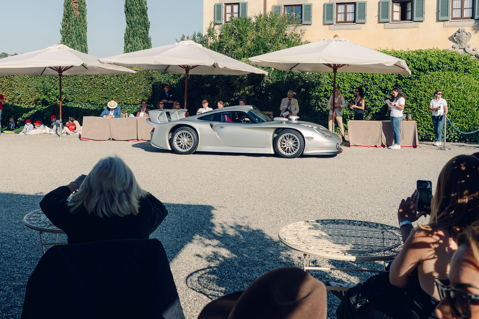 The special award from Villa La Massa highlighted another captivating aspect of automotive allure: sportiness born for competition. It went to one of only 25 Porsche GT1s built to meet homologation requirements for racing. As rare as it is strikingly aggressive.